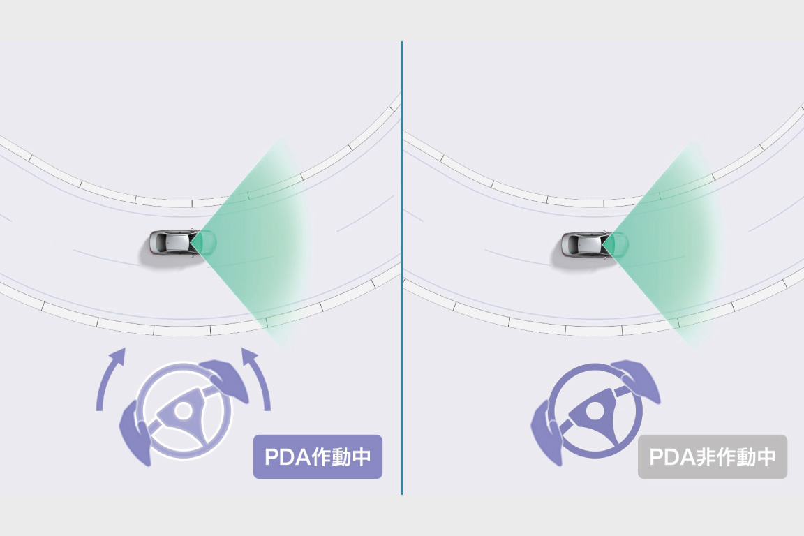 レーダークルーズコントロールで先行車に追従している時、先行車が通信利用型レーダークルーズコントロール対応車両であれば、車車間通信により取得した先行車の加減速情報にすばやく反応して車間距離や速度の変動を抑制し、スムーズな追従走行が可能となります。