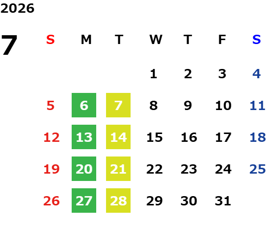 営業日カレンダー