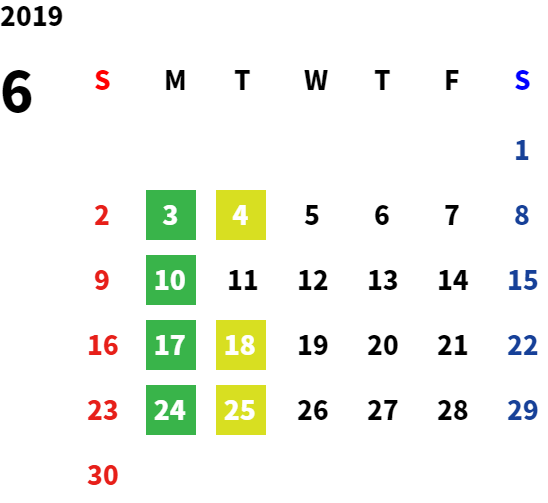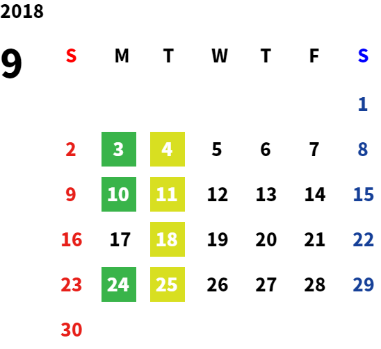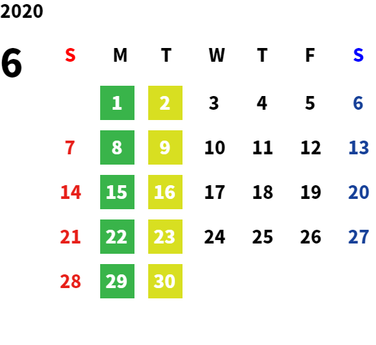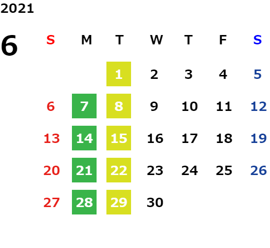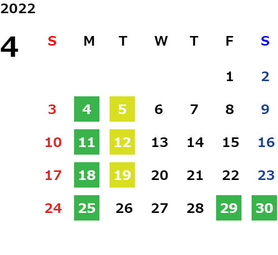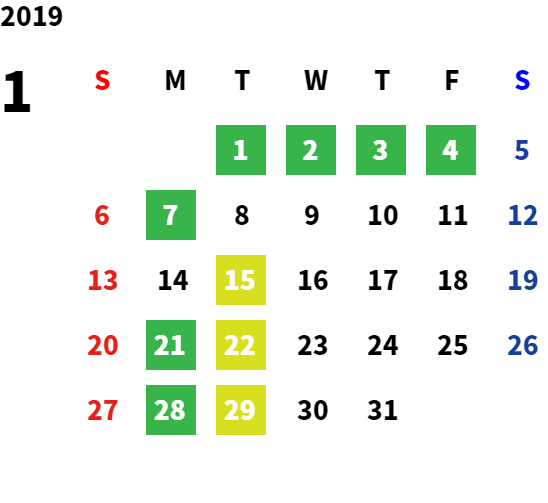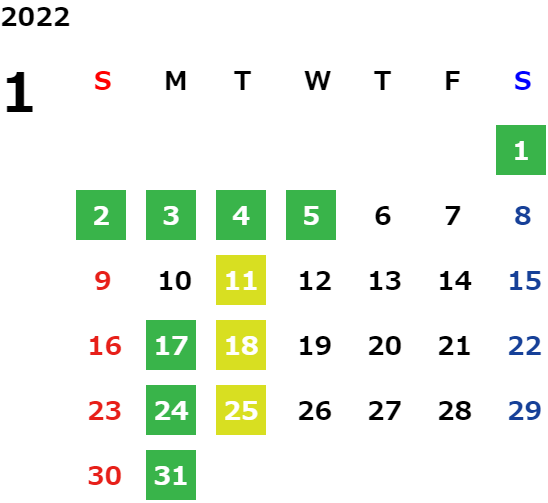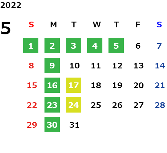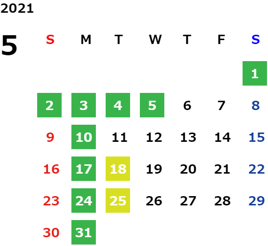 営業日カレンダー