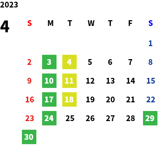店舗の営業カレンダーをご覧ください。