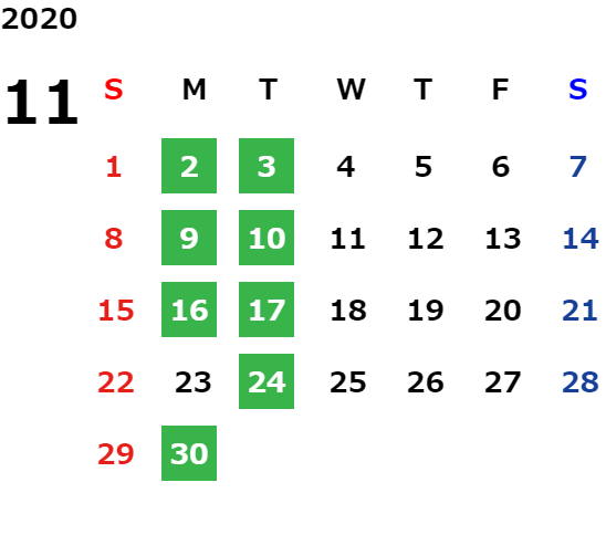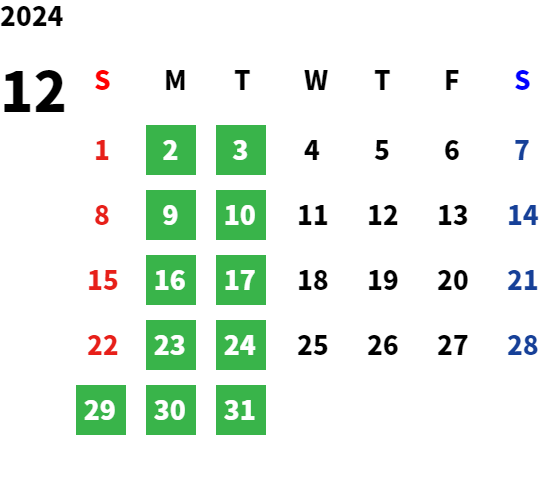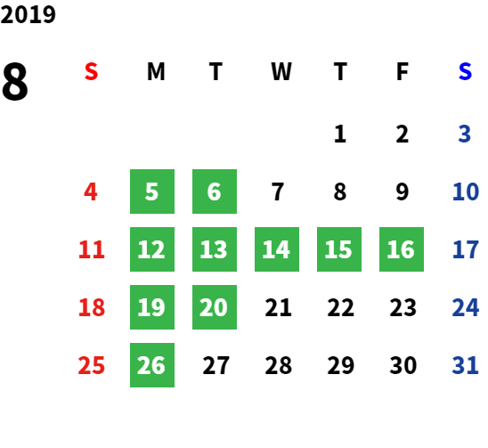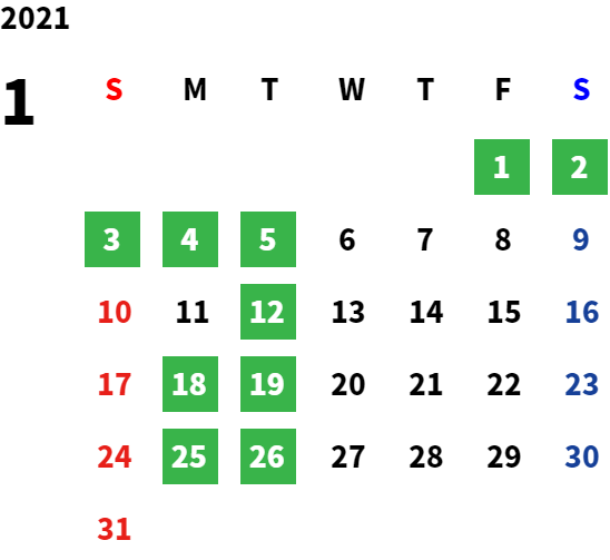 営業日カレンダー