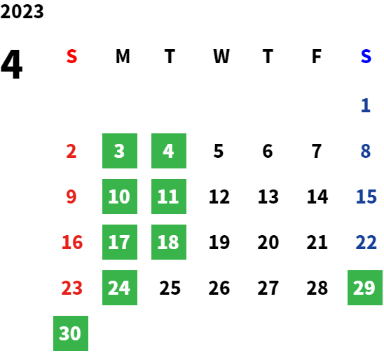 店舗の営業カレンダーをご覧ください。